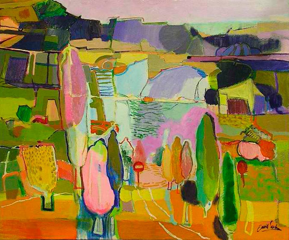 tanto era mi fascinación, que realice una serie sobre cipreses. El ciprés es un árbol, estirado, espiritual, solitario, elegante y sobre todo muy plástico.. Fue una época muy colorista, casi "fauve", pero sin olvidar el dibujo y la figuración entendiéndola a mi manera, claro.